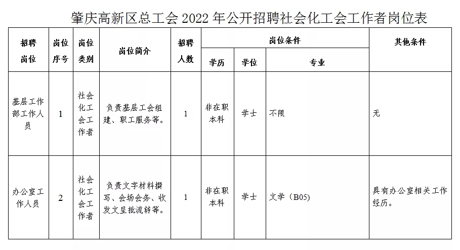 2、報(bào)名地點(diǎn):肇慶高新區(qū)知青路區(qū)總工會(huì)(辦公樓二樓信息調(diào)研室)。