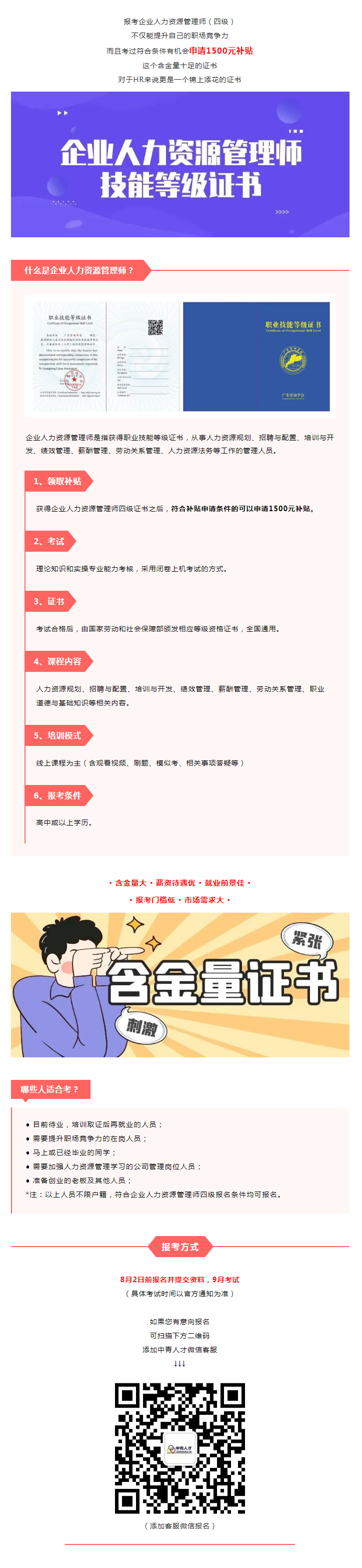 人力資源管理師考證,8月2日前報名并提交資料,可申領1500元補貼!