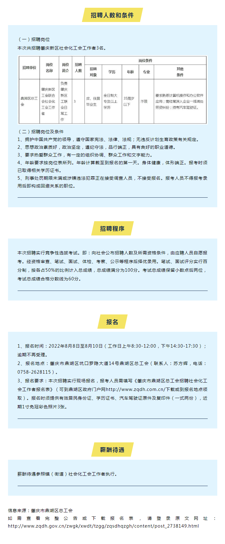 肇慶市鼎湖區(qū)總工會(huì)公開招聘社會(huì)化工會(huì)工作者公告