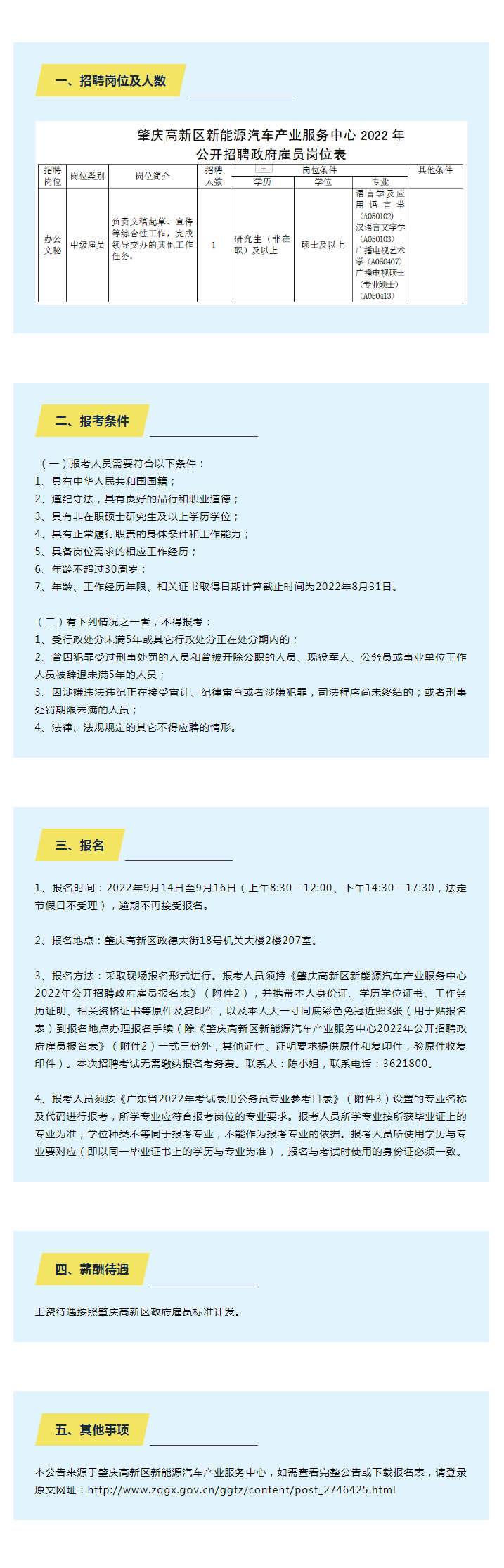 肇慶高新區(qū)新能源汽車產(chǎn)業(yè)服務中心2022年公開招聘政府雇員公告