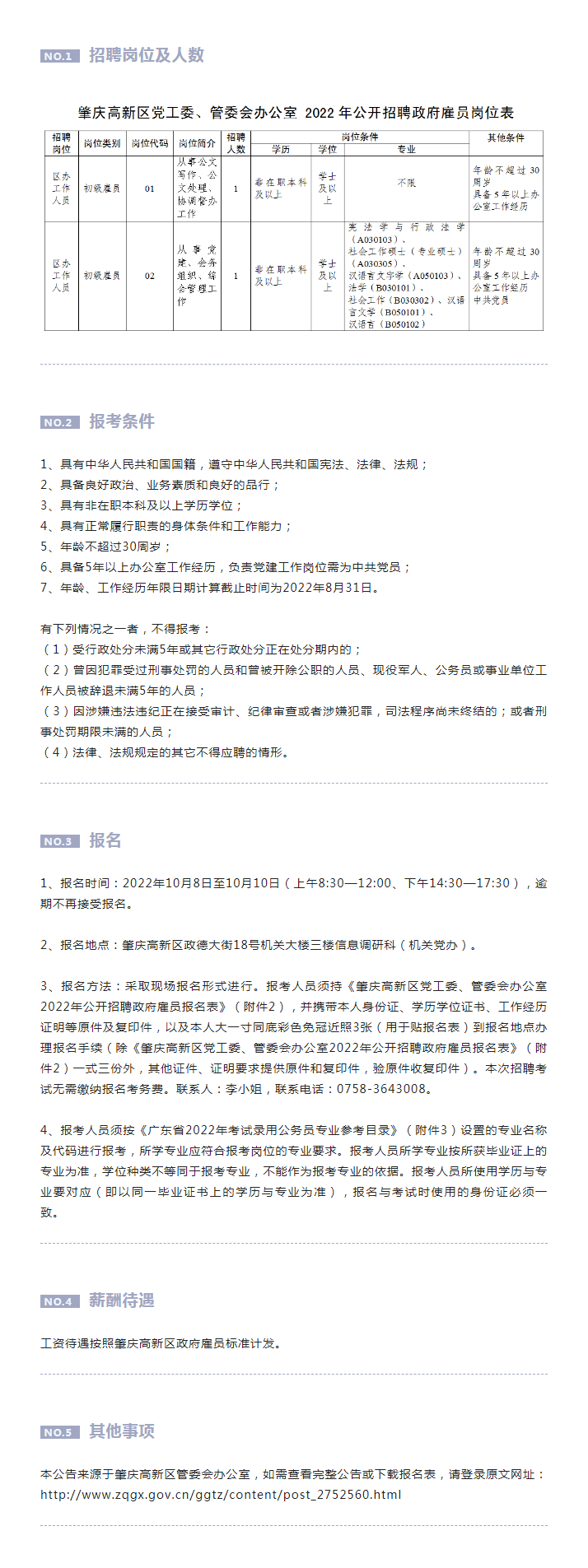 肇慶高新區(qū)黨工委、管委會辦公室2022年公開招聘政府雇員公告
