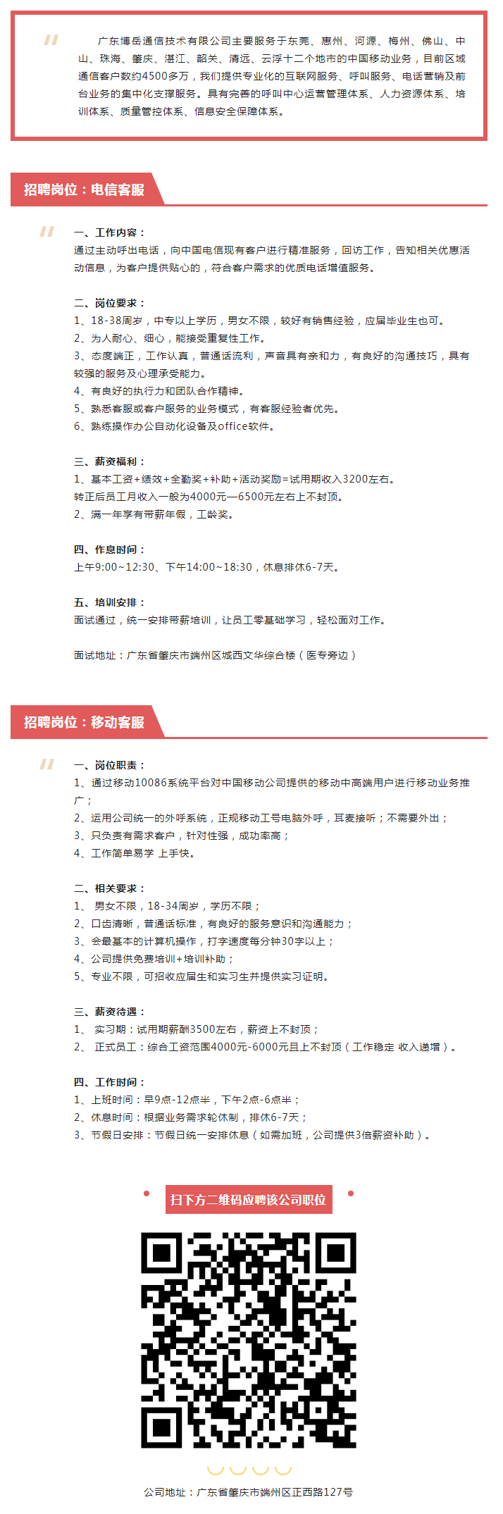 【專場(chǎng)招聘】博岳通信技術(shù)股份有限公司肇慶分公司